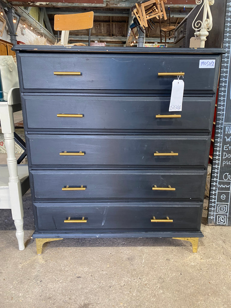 Black Painted Chest of Drawers With gold details. All fairly smooth running.