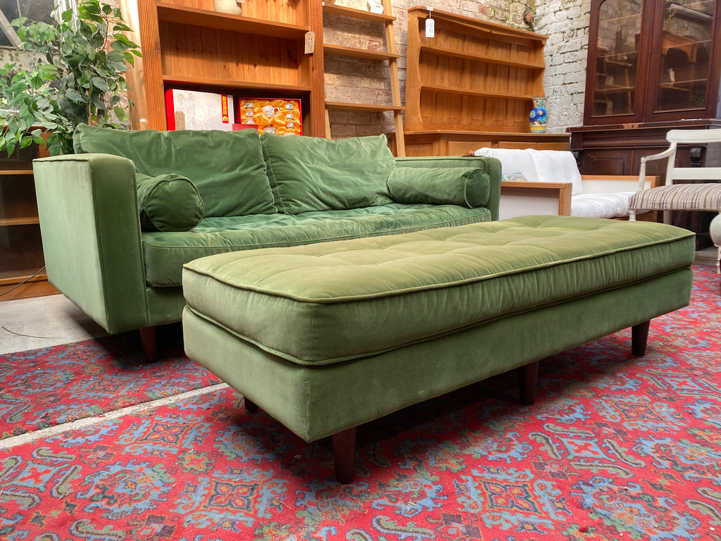 Green Velvet Sofa & Ottoman
