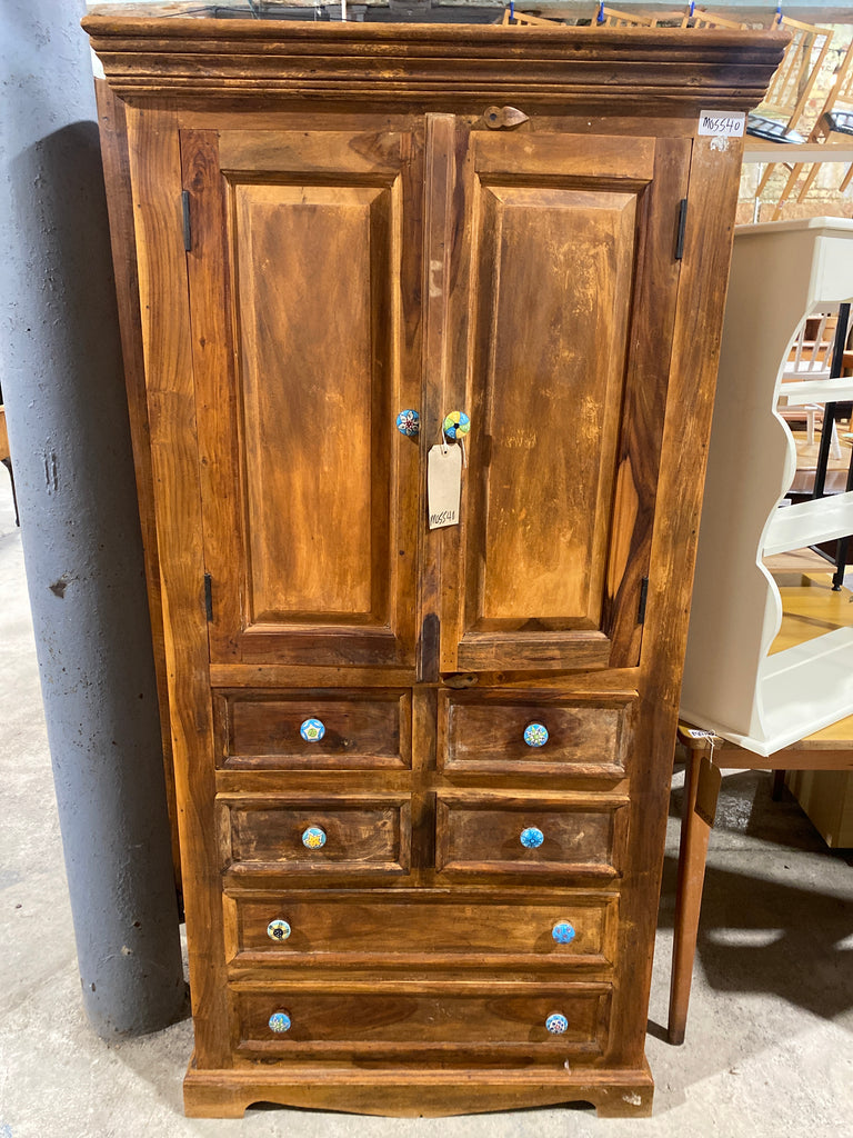 Lovely Solid Rosewood Linen Cupboard with four small and two larger drawers. Attractive painted ceramic handles. Cupboard on the top.