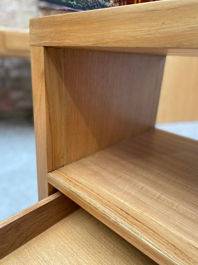 Charles Orchard Large Rattan Bedside Table with stunning curved ergonomic edges and tapered legs. Two smooth running soft close drawers finished with brass handles.