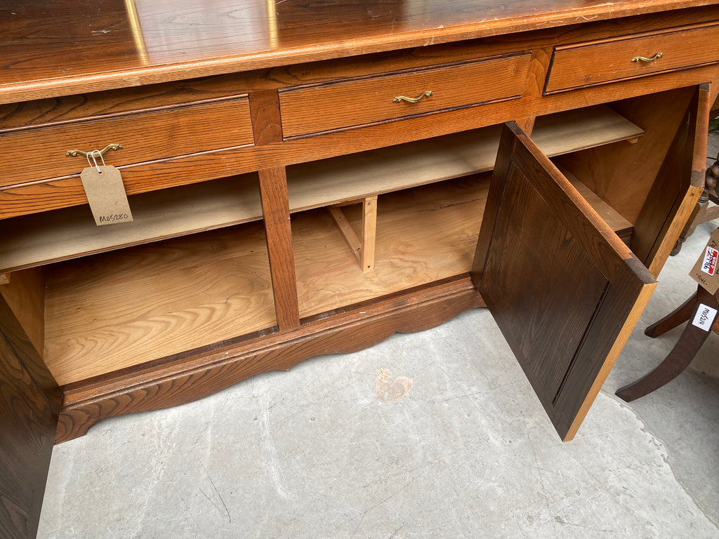 Extra Large wooden Welsh Dresser With panelled back, three doors and three drawers. Drawers all smooth running.