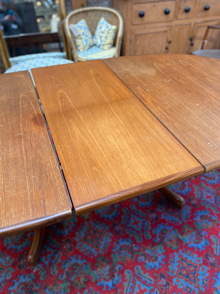 Mid Century Oval Extending Teak Dining Table by G-Plan. Extending piece folds out from the middle. Solid teak and teak veneer.