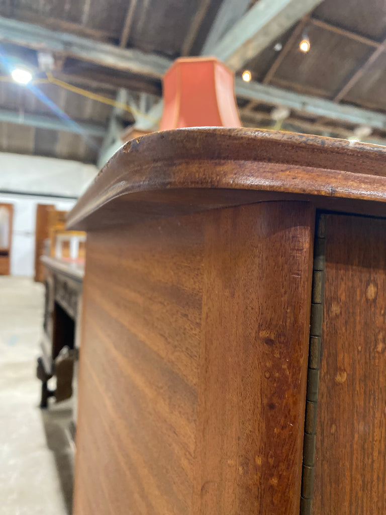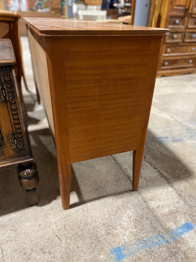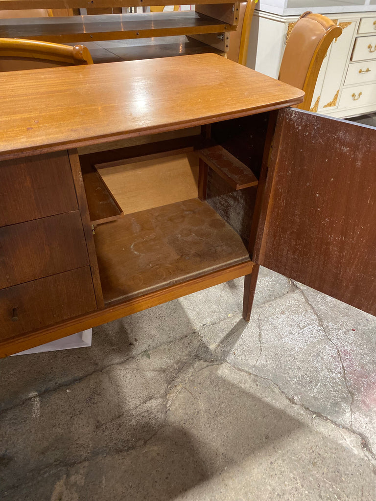 Overall in great condition, with expected marks, dents and scratches to the wood. Doors and drawers are a bit stiff and swollen with moisture