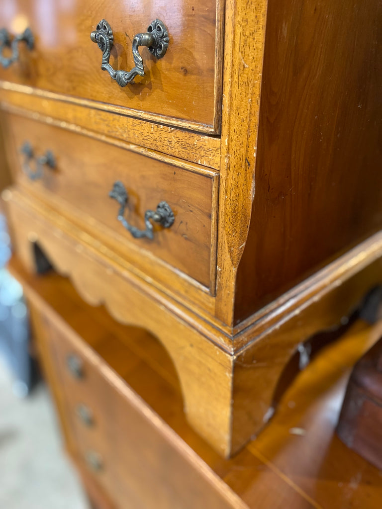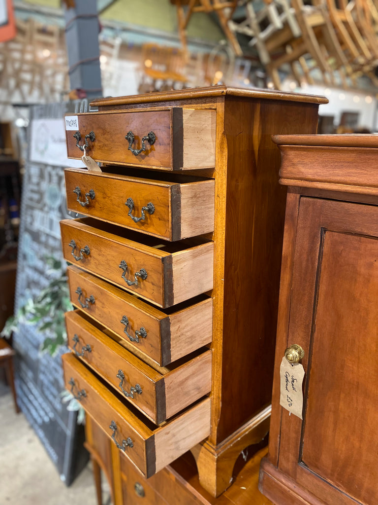 Attractive narrow Chest of 6 Drawers. All of which are smooth running. Finished with attractive detailed handles