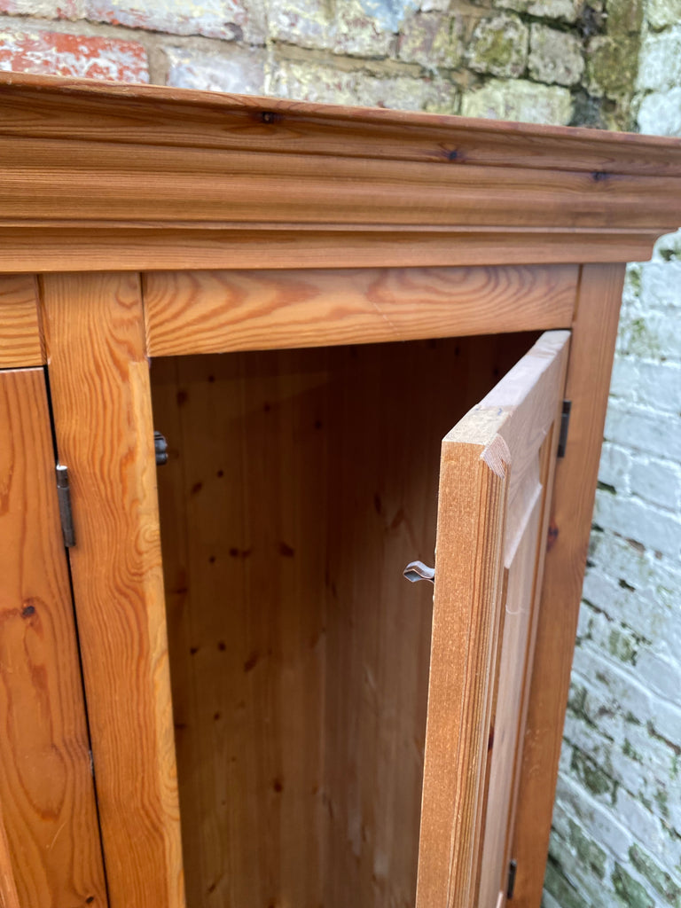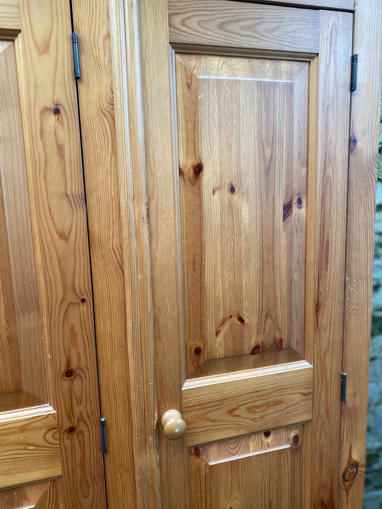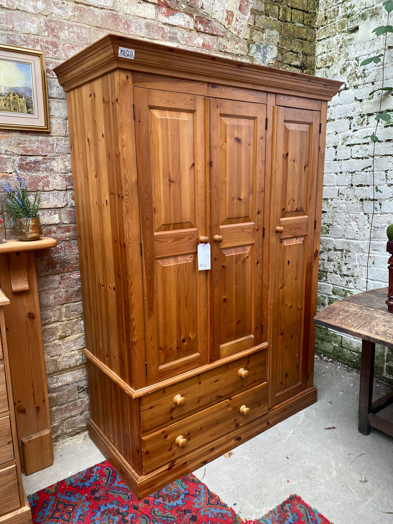 Lovely Pine Triple Wardrobe with full length and 3/4  length hanging rail, and two smooth running drawers. Panels on the drawers and back.