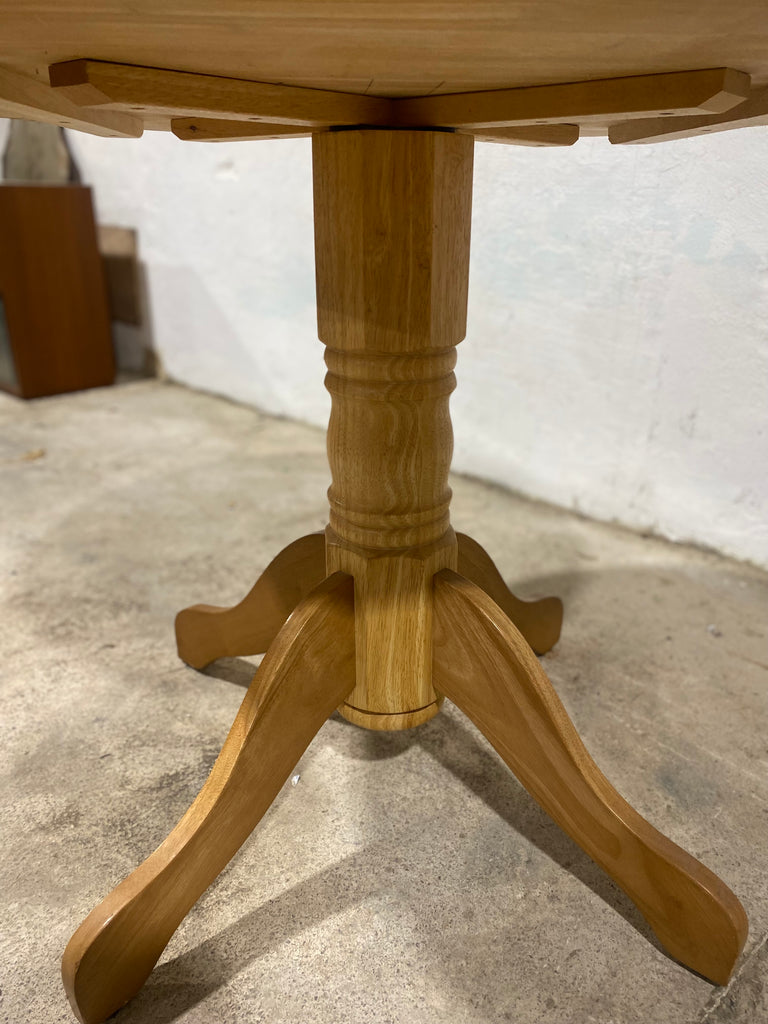 Small Round wooden Dining Table With pedestal base. Oak effect finish.