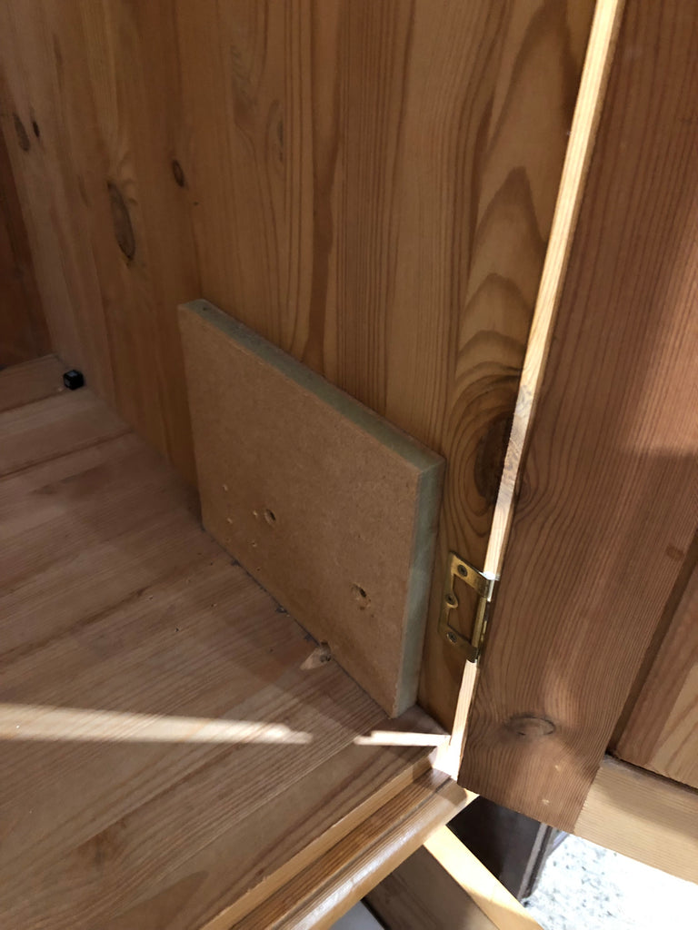 In good condition overall - has natural wear, marks and chips as expected with age and use. One piece of wood attached to cover drill holes