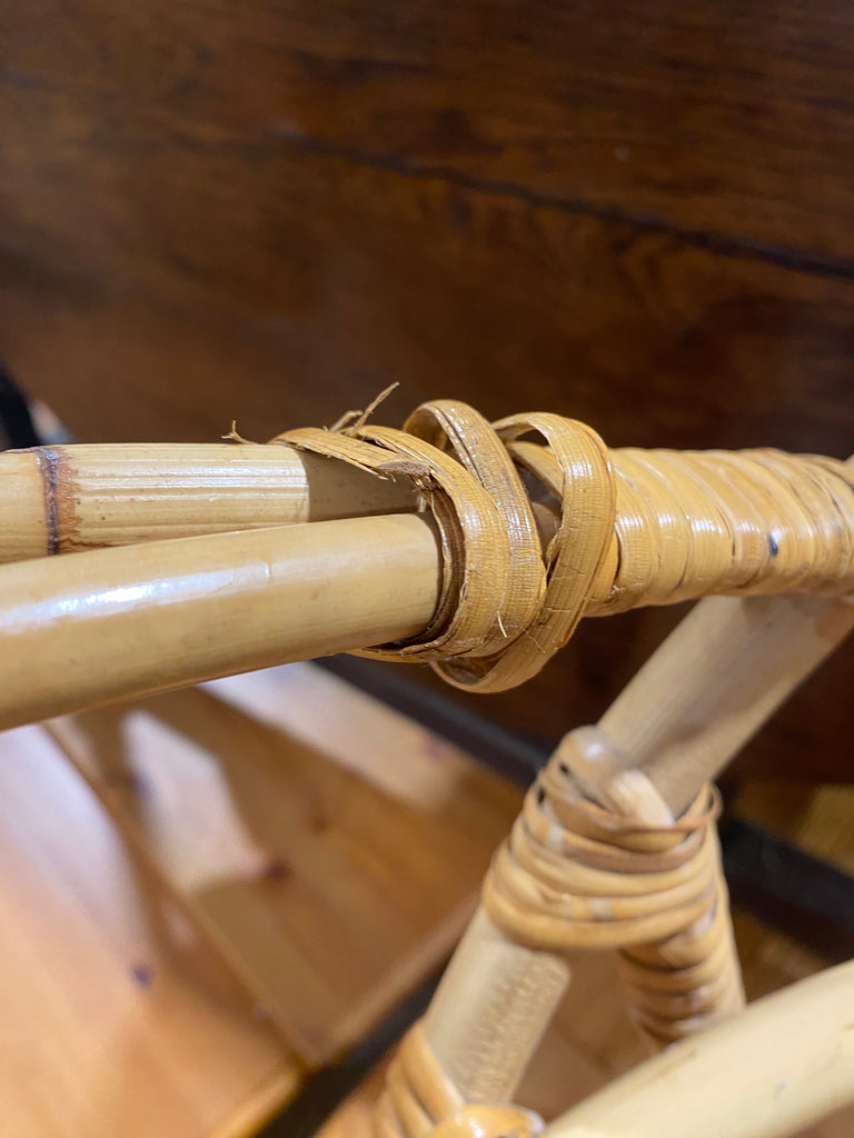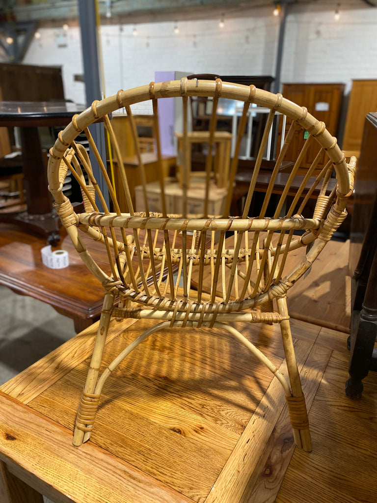 In great condition overall - some scuffs marks and scratches as expected with age and use. Cane broken and unravelling on one arm