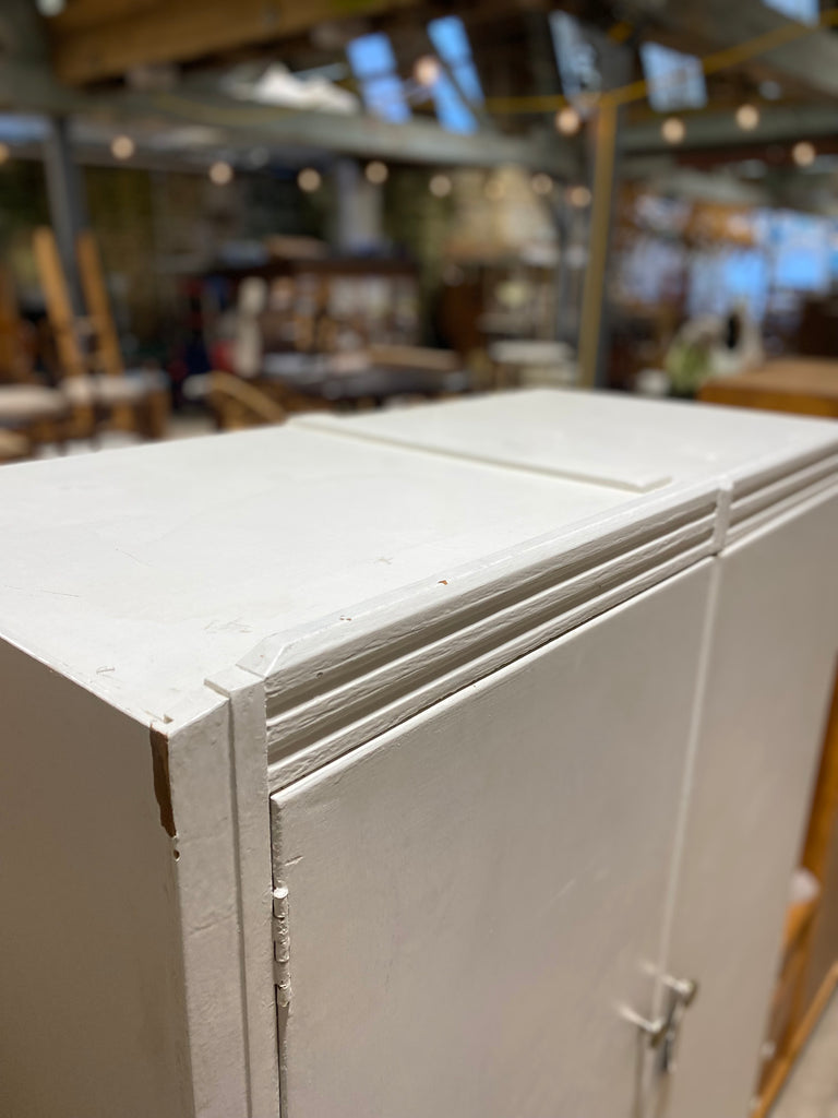 Lovely vintage painted Lebus wardrobe. Shelves for storage with original labels on. Tie rack snd hanging rail.