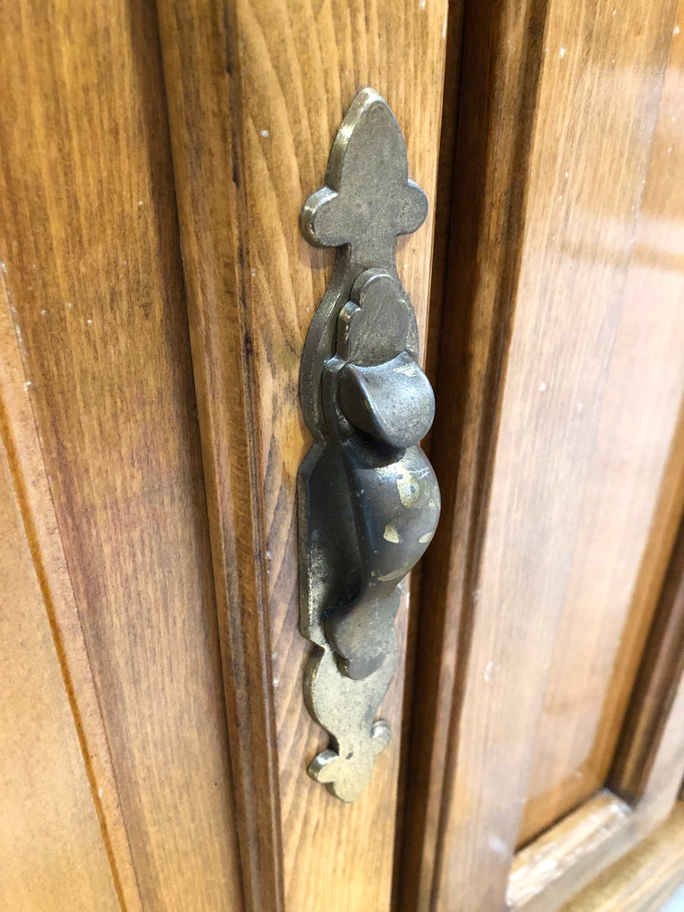 Wooden Compact two door Sideboard with shelf inside and brass handles.
