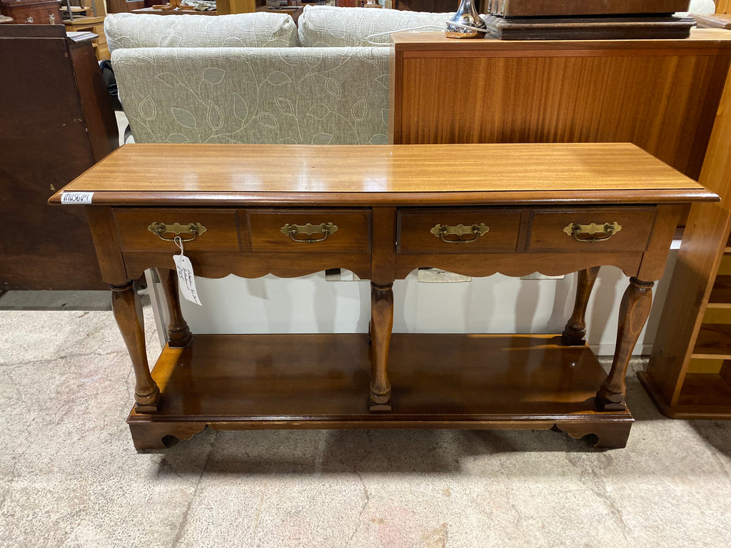 Wooden Two Drawer Sideboard With attractive brass handles. Turned legs and storage space underneath.