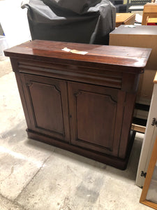 Solid and sturdy, the expected marks and scratches. Drawer open and closes smoothly