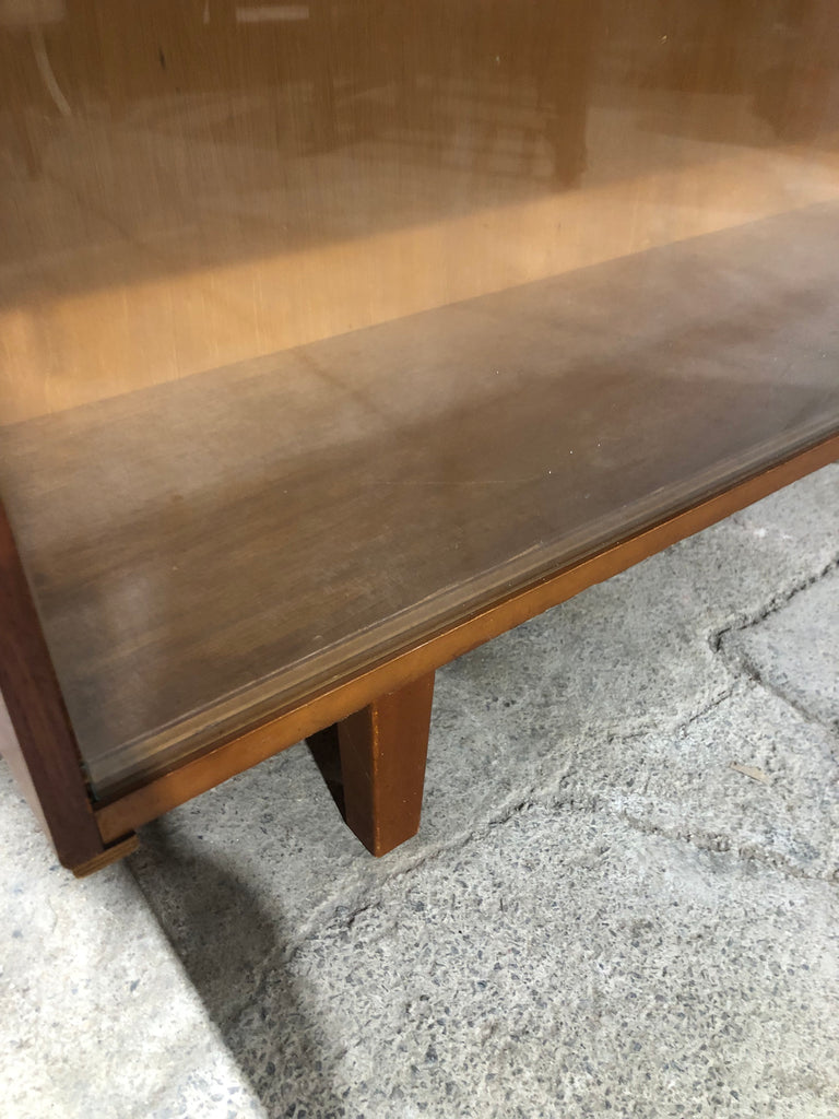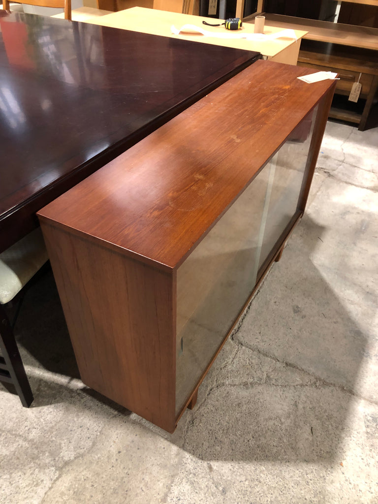 Mid Century Teak Display Bookcase With smooth running sliding glass door front and shelf inside