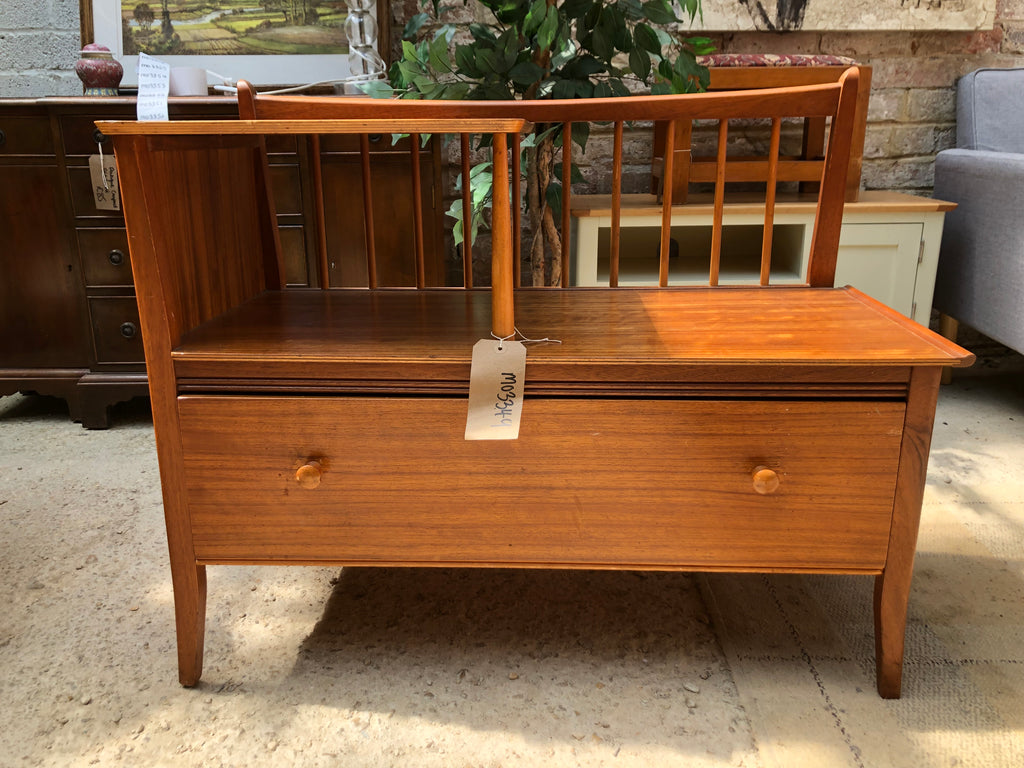 Lovely little wooden mid century telephone seat with made from a teak wood mixture.
