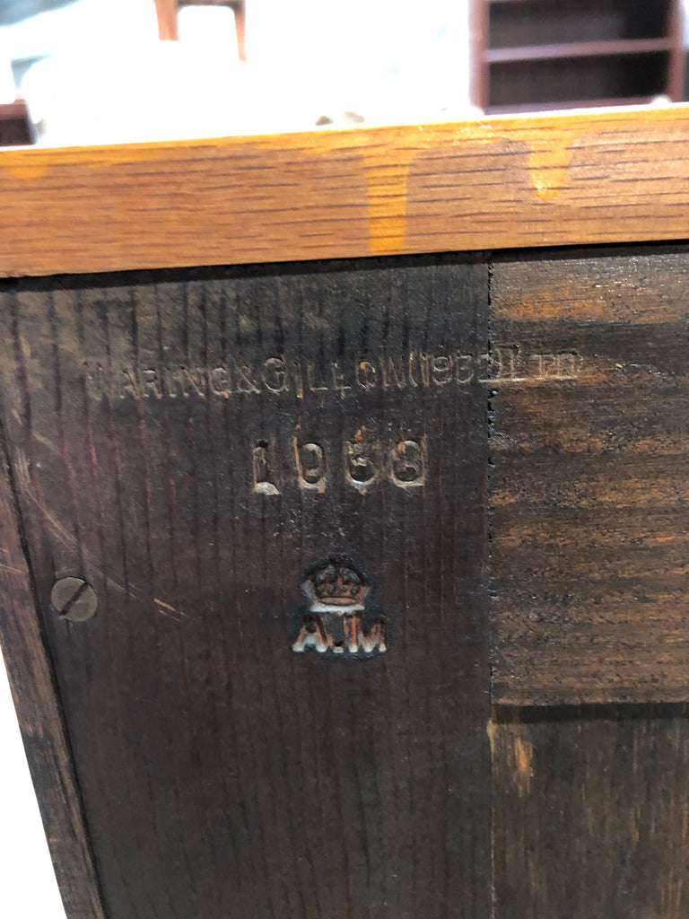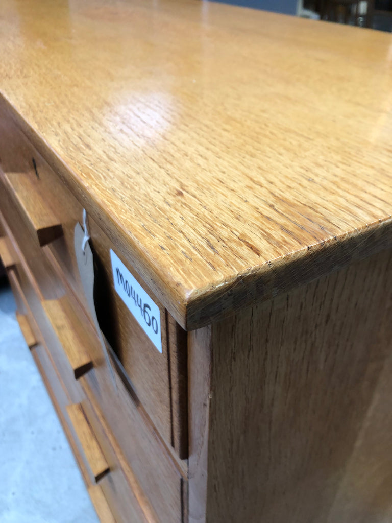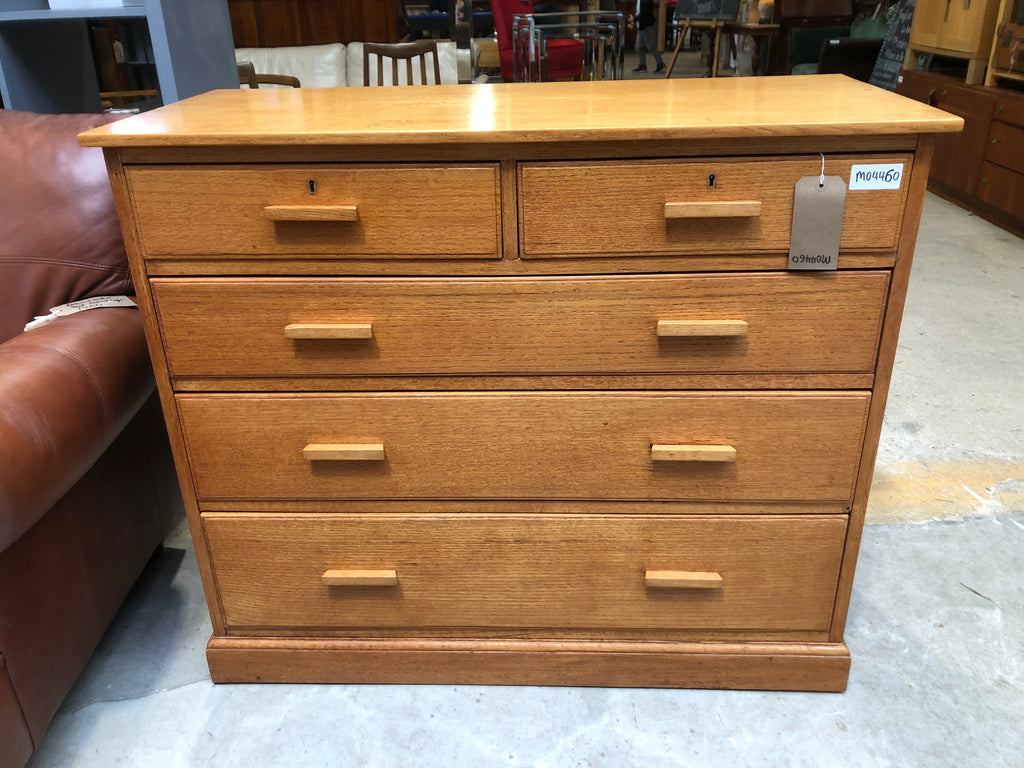 Oak two over three chest of drawers. Mid century design. Smooth running drawers Made with dovetail joints. No key included.