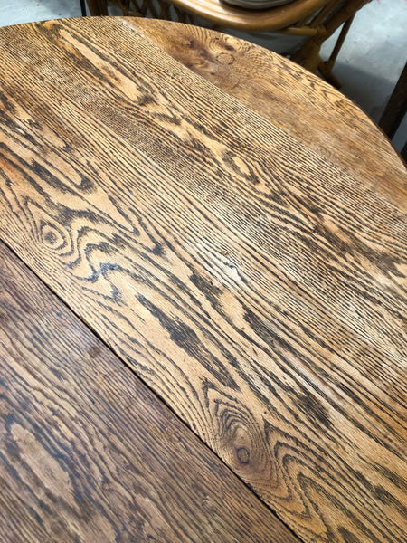 Oak Drop Leaf Gateleg Dining Table with turned legs and slightly sanded down paler oak top.