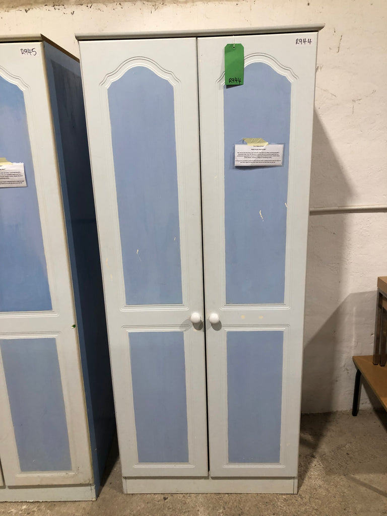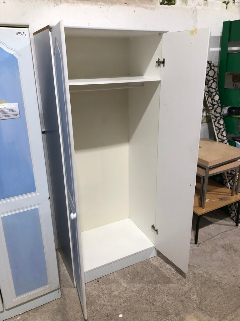 Nice little blue and white painted double wardrobe with full length hanging rail and storage shelf.