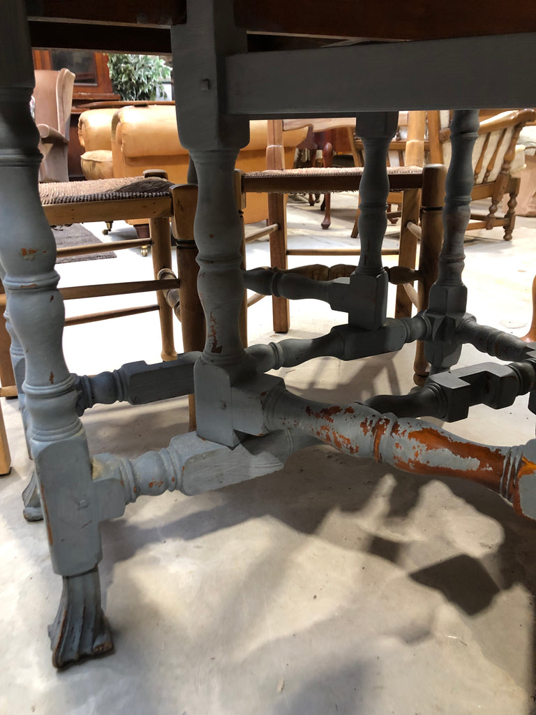 Rustic Pine Gateleg Table & 4 Chairs With wicker seats and ladderbacks.