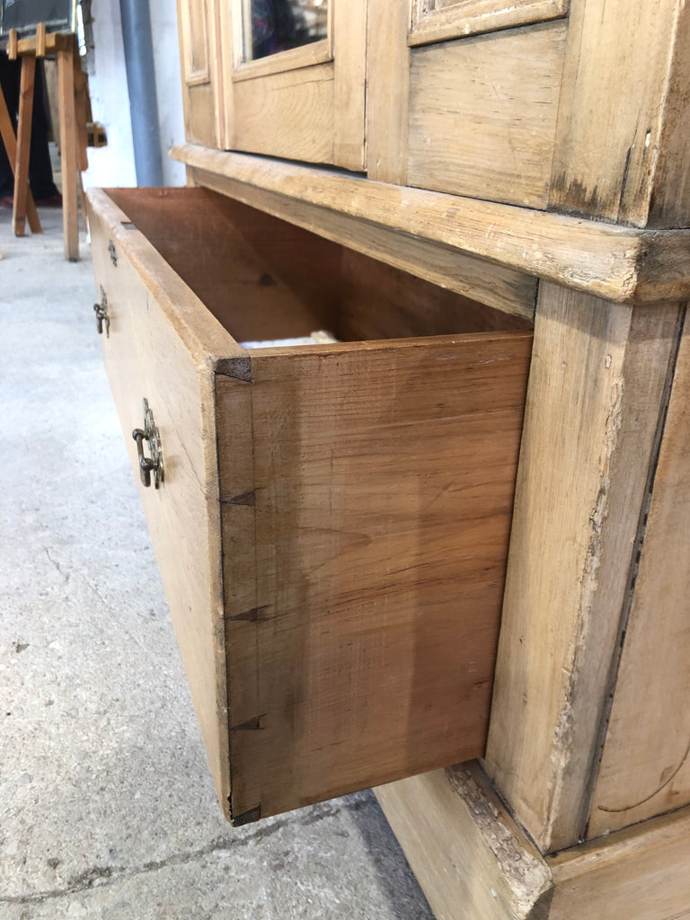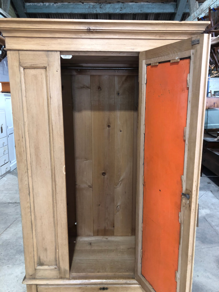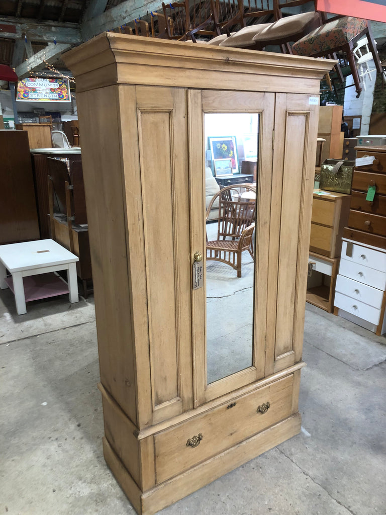Lovely Rustic Pitch pine double wardrobe with a mirrored door and single drawer to the base